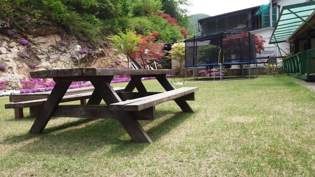 At Charm Pension in Gapyeong-gun, South Korea, guests can look forward to a range of exciting entertainment facilities that are sure to enhance their stay. The lush garden surrounding the property is not only a picturesque backdrop but also offers a variety of activities to keep guests entertained. Take a leisurely stroll through the beautifully landscaped garden, where you can admire the vibrant flowers and serene atmosphere. For those seeking some friendly competition, challenge your travel companions to a game of badminton or volleyball on the well-maintained court. The garden also features a barbecue area, perfect for enjoying a delicious meal while basking in the natural beauty of the surroundings. Whether you're looking for relaxation or a bit of fun, the garden at Charm Pension has something for everyone.