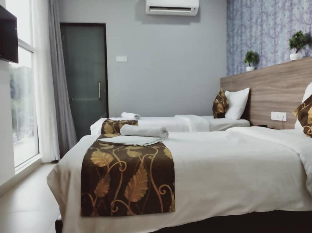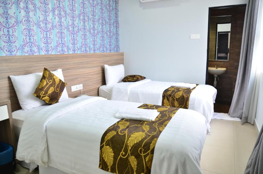 My son and I arrive around 1.30pm on Saturday. We were informed by the reception staff that there will be pasar malam (night market) right in front of the hotel. So she advised me to park my car at the back, but I found another parking nearby which is free opposite the shop lots. She's friendly and smiley 😊. We only stay one night so deposit of RM50 is needed. It has to be cash, they do not accept online payment. Surrounding the hotel there are many places to eat and 99 speed mart is besides the hotel. Also many food stall nearby. The night market is a big one with plenty of foods 😋. We were allow to check in at 2.30pm. the room is clean. Bathroom clean. 2 single bed room is facing the night market. After 10pm the night market closed, I moved my car to the front of the hotel. There are many parking no worries. Check out is smooth. Then we went to Restoran Hatinie. OMG you'll go crazy!!!! There's so many dishes you'll go nuts!!! They even have satay for breakfast!!!! Snacks, desserts, bubur so many types... Everything is self service!! It's about 15 minutes drive from the hotel. Must try!! I highly recommend this hotel and will go back there again in the future.
