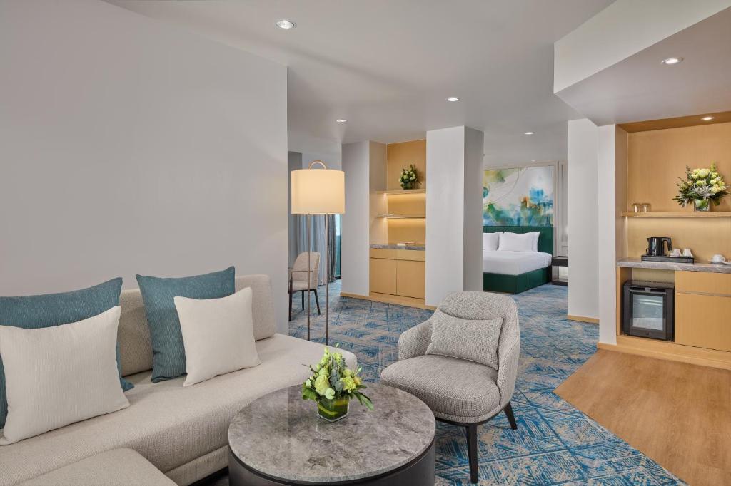 For those seeking a more expansive accommodation, the Executive Suite King Bed offers a spacious 73 square meters of luxurious space, complete with a king bed for a restful night's sleep. The Junior Suite King Bed and Junior Suite Twin Bed also provide ample space at 49 square meters, ensuring a comfortable and enjoyable stay.