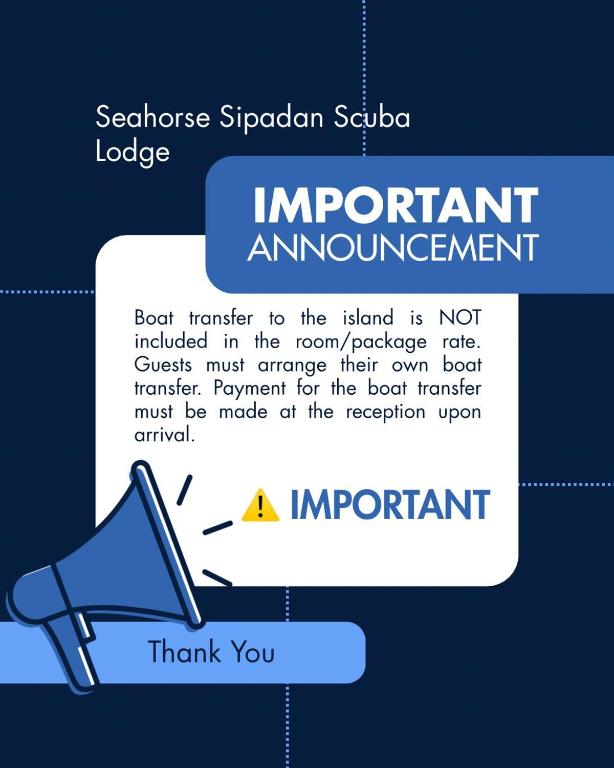 When it's time to bid farewell to this idyllic retreat, check-out is until 02:30 PM, giving you ample time to prepare for your onward journey. As you leave Seahorse Sipadan Scuba Lodge, you'll carry with you cherished memories of a truly magical experience in Semporna, Malaysia.